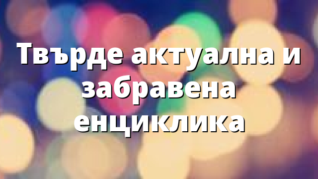 Твърде актуална и забравена енциклика