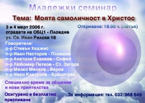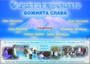 На 13, 14 и 15 октомври 2006 г. в гр. Пловдив, в сградата на ОБЦ 1 - гр. Пловдив ще се проведе Младежка конференция. Темата: "Божията слава". Ще...